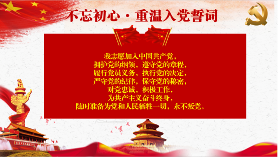 会议在庄严的《国际歌》声中拉开帷幕。全体与会党员在党务干事沈霁月的领誓下,重温入党誓词,表达了为共产主义事业奋斗终身的理想和信念。