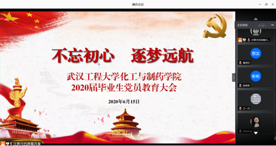 院党委书记王雪梅讲授“不忘初心,逐梦远航”为主题的毕业生党员教育课。她首先代表学院党委对毕业生党员在创新创业、学科竞赛、考研深造、积极就业和抗击疫情中取得的成绩和所做贡献表示充分肯定和热烈祝贺,并对毕业生党员提出三点要求:一是要不忘入党初心,争做新时代共产主义战士。树牢“四个意识”,坚定“四个自信”,坚决做到“两个维护”,在一言一行、一点一滴中践行党员使命;二是要牢记党员身份,争做党员青年“排头兵”。临近毕业返校,学生党员要带头严格执行疫情防控和返校纪律要求,发挥示范表率作用,安全返校、文明离校,展现新时代青年党员精神风貌;三是要常怀感恩之心,争做新时代的追梦人、逐梦人、圆梦人。母校永远是大家事业发展的坚强后盾,希望毕业生们常“回家”看看,常“回信”聊聊,并寄语毕业生党员们坚定理想信念、勇于攻坚克难、敢于追逐梦想!王雪梅书记祝福各位毕业生顺利返校、开心在校、愉快离校!