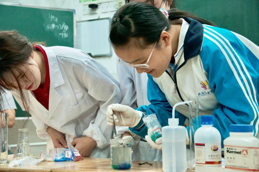 为进一步增进同学们对化学的了解,周功权同学为大家做“化工强国,争做爱国主题新青年”的主题报告,从衣、食、住、行等四个方面深入浅出的展现了化学之美,引发了在场同学们积极的思考和热烈的讨论。交流学习结束后,队员们向同学们展示了精心准备的趣味实验--“黄金雨”、“水中花园”和“大象牙膏”,同学们全身心的参与其中并亲自动手体验化学实验的乐趣,激发了同学们的学习兴趣。