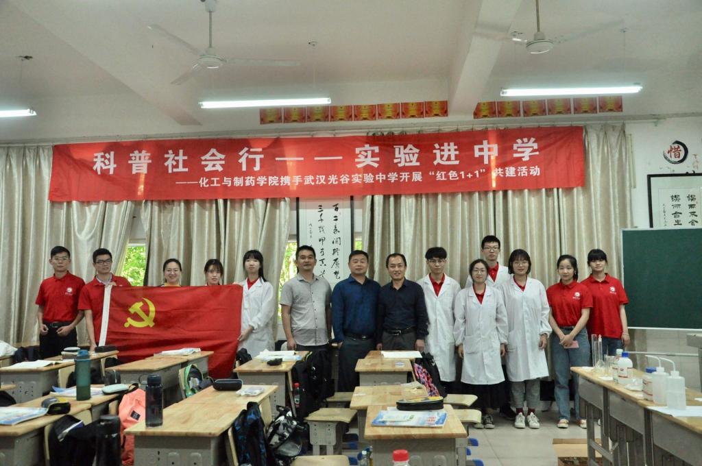 本网讯(通讯员刘清晨 田丽敏)为深入学习宣传贯彻习近平总书记在纪念五四运动100周年大会上重要讲话精神,践行习总书记对青年提出的六点要求,激励青年学生争做爱国主义新青年,5月23日,学院党委副书记田勇和党务干事朱雪洁带领学院党员、入党积极分子20余人来到武汉光谷实验中学开展“科普社会行--实验进中学”红色“1+1”共建活动。武汉光谷实验中学党委书记江卫华及八年级六班的班主任、全体同学参与活动。
