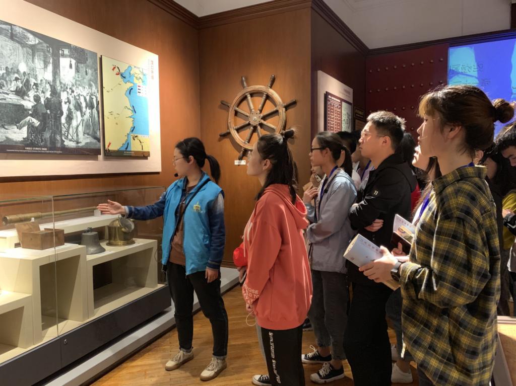 江汉关大楼经风历雨近百年,是武汉走向现代化的重要历史见证。在讲解员的带领下,我们通过“汉口开埠”、“艰难跋涉”和“走向辉煌”三个单元了解了《江汉朝宗——武汉城市现代化历程》的概况。博物馆为展现江汉关海关业务而设计了复原场景,同学们置身此地,仿佛身临其境,极大地提高了学习兴趣。讲解员详细向我们介绍了汉口开埠设关后西方列强对武汉的掠夺,人民饱受压迫后再中国共产党领导下奋起反抗,城市面貌在社会主义建设和改革开放后发生翻天覆地的变化。