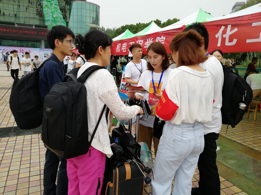 9月5日-6日,我院专设党员志愿服务岗在大礼堂门口进行摆点迎新。随着新生及其家长的到来,志愿者们都精神饱满,事无巨细的为新生提供各项服务。