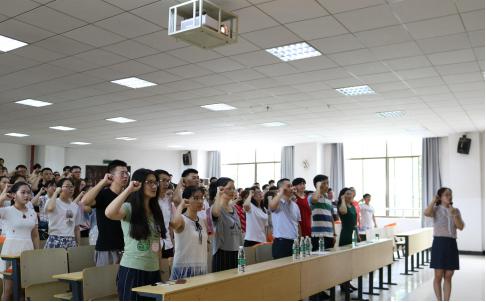 在党务干事朱雪洁的领誓下,与会党员佩戴党徽,庄严地举起右手,面向党旗,共同重温入党誓词,表达了为共产主义事业奋斗终身的理想和信念。