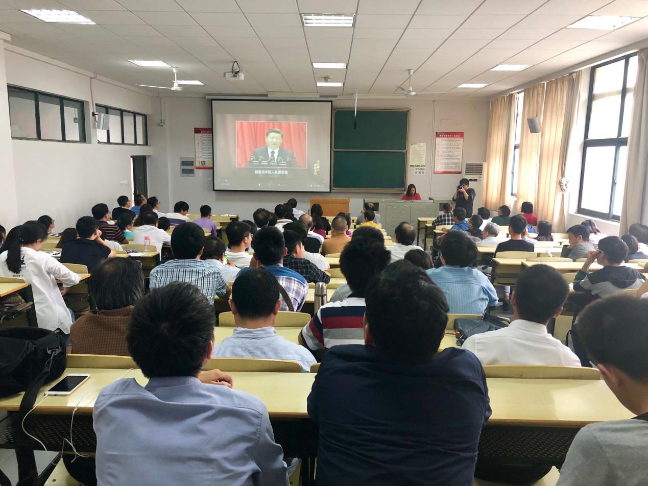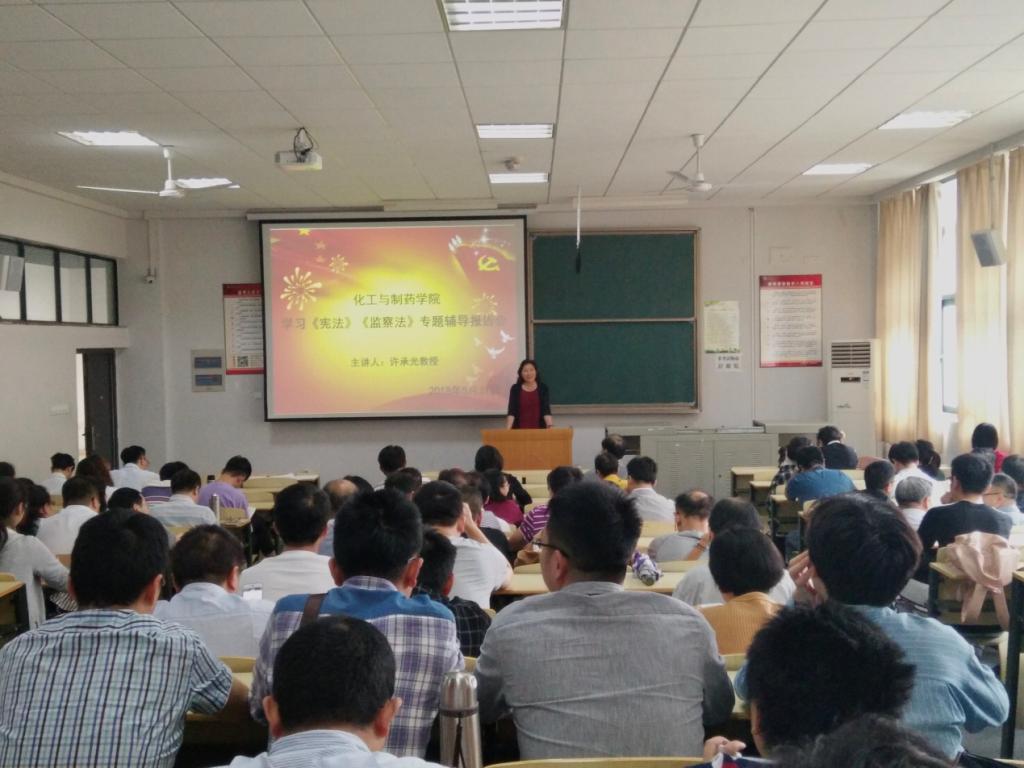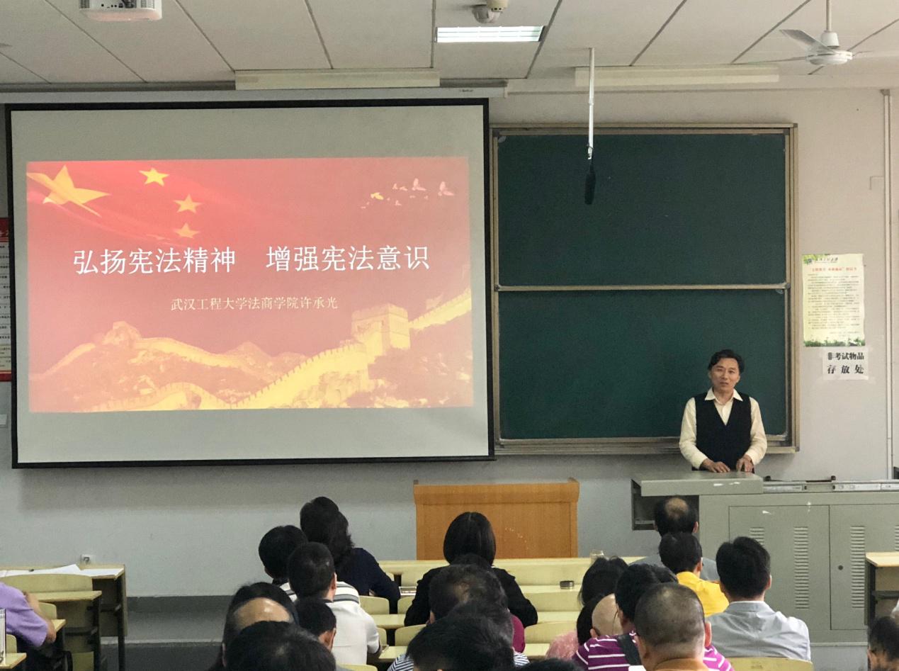 5月31日,永利集团304am登录学习《宪法》《监察法》专题辅导报告会在流芳校区4201教室举行,会议邀请法商学院许承光教授做专题辅导报告,全院教职工和各学生党支部支委会成员参加了会议。