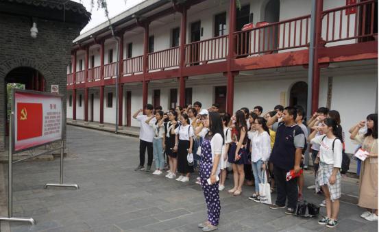 大家先后参观了中共五大会址,毛泽东旧居,武汉革命博物馆,通过观看反映当时历史的革命图片、文献资料和实物陈列,真切感受到了先辈们为革命所付出种种艰辛与不易,身临其境的感受了革命先辈们的伟大精神。为表达对先辈的敬仰,学院党务干事朱雪洁带领党员同志在党旗前庄严宣誓,重温入党誓词。