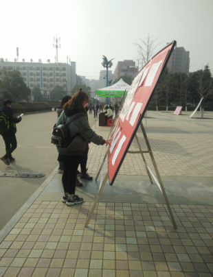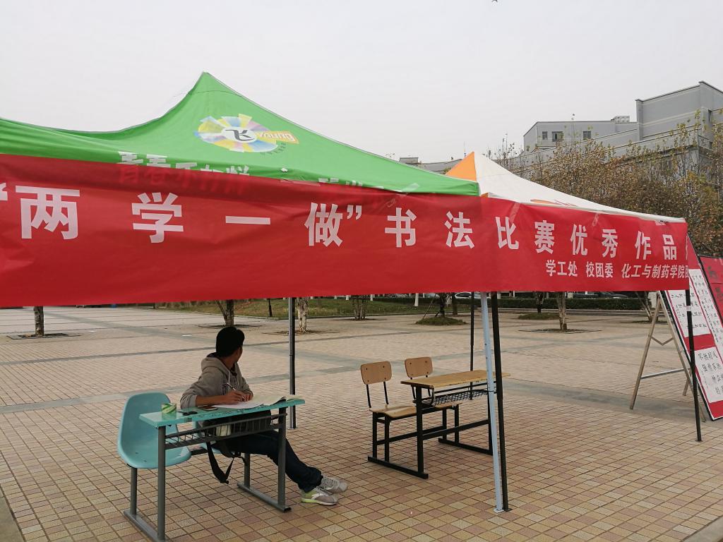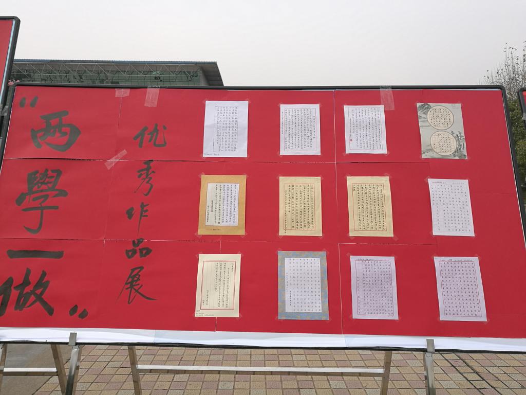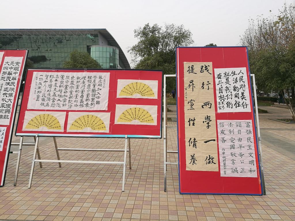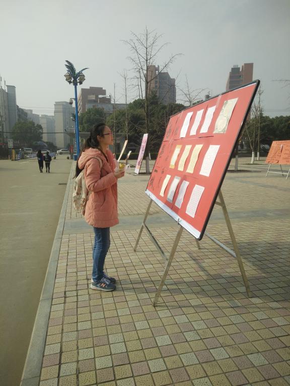 11月30日和12月1日,“两学一做”书法大赛优秀作品在流芳校区大礼堂广场前进行了为期两天的摆点展览,此次展览吸引了全校师生的众多关注。