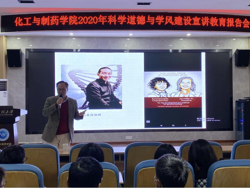 本网讯(通讯员 周雅琪)为深入学习贯彻习近平总书记关于科学道德和科研诚信建设重要指示精神,贯彻落实《关于进一步加强科研诚信建设的若干意见》《关于进一步弘扬科学家精神加强作风和学风建设的意见》,12月12日,永利集团304am登录在大化工楼610报告厅举办科学道德和学风建设宣讲教育专题报告会,学院副院长龙思会作专题报告。导师代表、研究生辅导员及100余名研究生参会。