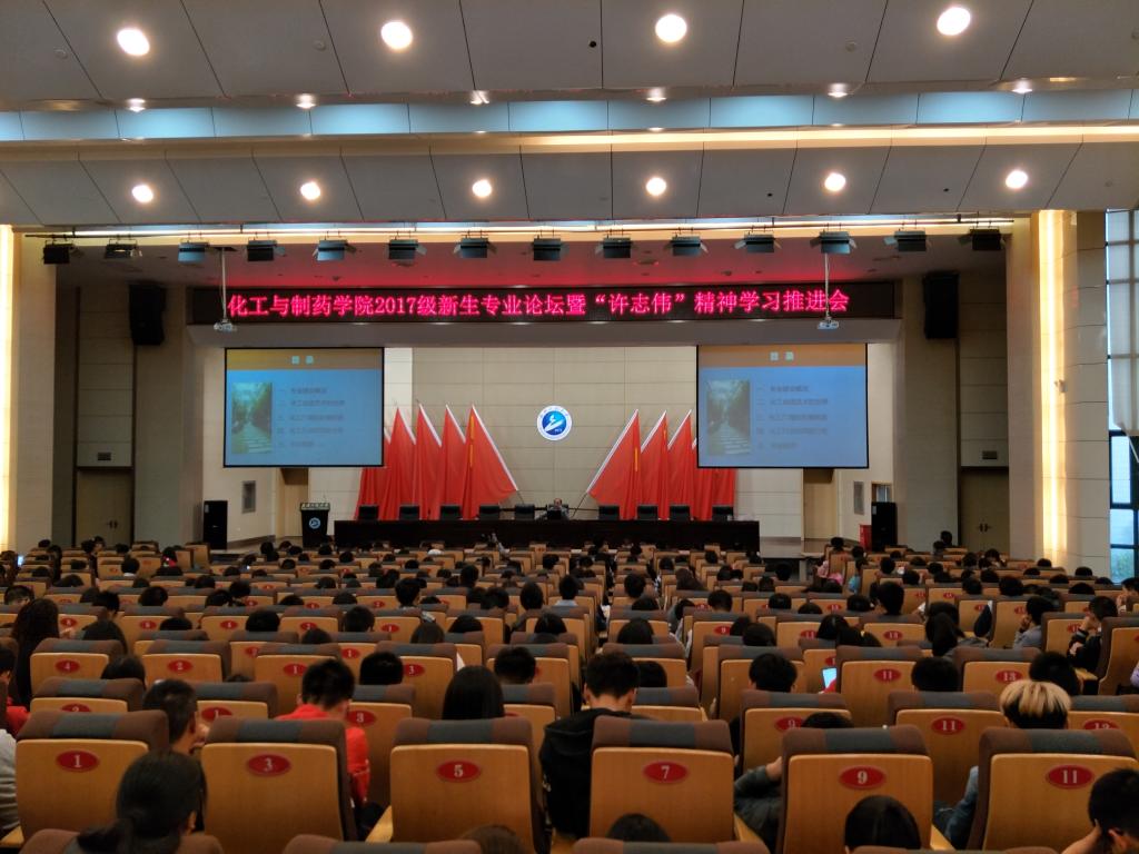 10月19日下午2时,永利集团304am登录2017级新生专业论坛暨“许志伟”精神学习推进会分别在流芳校区四教多功能报告厅和L1219教室隆重举行。学院院长喻发全、制药工程专业人才培养发展中心主任张珩、生物工程专业人才培养发展中心张佑红、学院党委副书记田勇老师出席会议。会议由辅导员郭洪伟主持。
