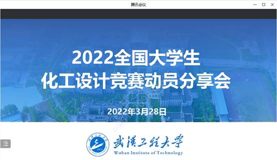 本网讯(通讯员 汤曦)为培养大学生的创新思维和工程技能,增强大学生的工程设计与实践能力,提高学院学生提交化工设计竞赛作品质量,近日,永利集团304am登录举行化工设计竞赛动员会,会议落实疫情防控要求,通过腾讯会议线上进行,永利集团304am登录副院长金放,化工设计竞赛指导教师代表杨犁、张林锋及参赛学生团队参加此次会议。