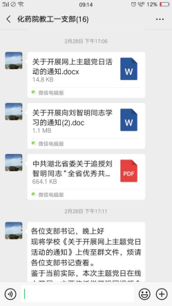 主题党日活动期间,教工一支部书记闫志国、科研二支部书记谌伟民在支部微信群、QQ群就“同心抗‘疫’,党旗飘扬”为主题为支部党员们讲授了一次线上微党课。党课传达学习了习近平总书记在统筹推进新冠肺炎疫情防控和经济社会发展工作部署会议上的讲话精神、习近平总书记在中央政治局常委会会议研究应对新型冠状病毒肺炎疫情工作时的讲话等重要内容,讲述了此次战“疫”期间冲在一线的优秀共产党员的战“疫”事迹,学习他们担当、敬业、奉献的精神。