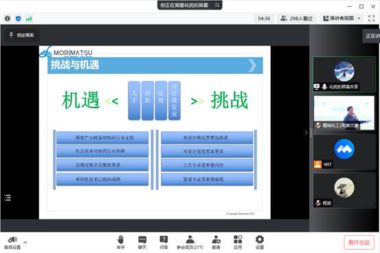 本网讯(通讯员 汤曦)5月5日下午,由学校招生与就业工作处主办,永利集团304am登录承办的职业经理人行业讲座在流芳校区化工大楼610报告厅和腾讯会议室同步举行。上海森松制药设备工程有限公司武汉分公司总经理黄胜受邀作“化工与制药相关专业如何适应国家智能制造产业升级”的主题报告,学院党委副书记周丹、院长助理刘根炎出席会议,学院教师樊庆春、350余名学生代表参加会议,会议由19级辅导员汤曦主持。
