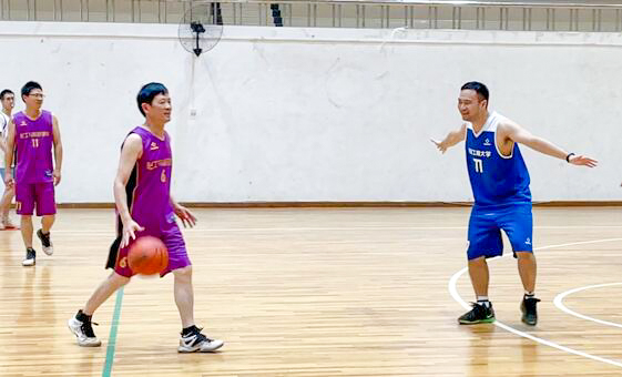 本网讯(通讯员 蓝传祺)为喜迎党的二十大胜利召开,庆祝学校建校五十周年,营造和谐、积极向上的校园文化氛围,活跃教职工文体生活,增强教职工健康体魄,以更加饱满的精神状态投入到育人工作中,永利集团304am登录联合校机关于9月29日开展了“喜迎二十大 奋进新征程”主题教职工篮球友谊赛。校党政办公室副主任肖平,永利集团304am登录党委书记汪铁林、院长易群、党委副书记周丹、副院长龙思会以及机关教师代表、学院教师代表到场为运动员们加油,并参与到比赛当中。