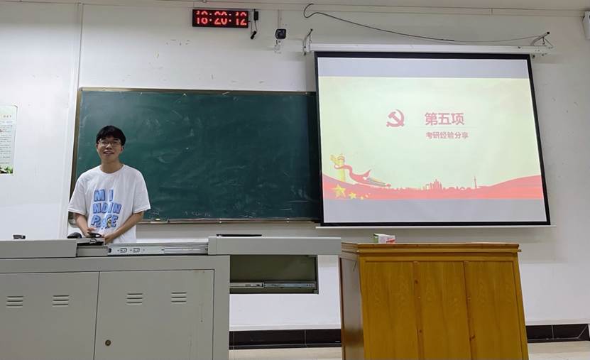 分享经验,共话成长。为帮助同学们消除在学习、就业、考研等方面的疑惑与迷茫,学院积极搭建学弟学妹们与优秀学长学姐沟通交流的平台,利用团学骨干分享沙龙、支部主题党日活动、“榜样力量 青春引航”优秀学子分享会和“研途追梦”考研经验线上线下分享会,邀请周金韵萍、兰鑫等优秀的学长学姐根据自身积累的宝贵经验,从学习生活、学科竞赛、考研备考、班级建设以及未来规划等方面传授个人经验,帮助同学们掌握科学的学习方法和考研经验,充分发挥身边榜样的“传、帮、带”作用。