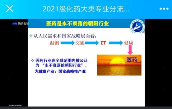 本网讯(通讯员 梅军)为有序开展学院化工与制药类专业分流工作,使学生明确选择专业方向,4月9日晚,永利集团304am登录通过腾讯视频会议和线上直播召开2021级专业分流动员宣讲会。学院党委书记汪铁林,院长易群,副院长金放、龙思会、闫志国,院长助理刘根炎,各系(中心)主任、副主任,2021级辅导员、班主任、全体化工与制药大类300名同学参加了此次线上会议,会议由学院党委副书记周丹主持。