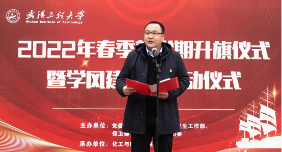 本网讯(通讯员 梅军)为进一步优化校风正、学风优、班风良的育人环境,激发学生的荣校爱校意识,以良好的精神风貌和优异的成绩庆祝校庆五十周年,喜迎党的二十大。2月28日,由党委学工部、研工部、保卫部(武装部)、校团委主办,永利集团304am登录承办的2022年春季学期第一次升旗暨学风建设月启动仪式活动在流芳校区田径场举行。