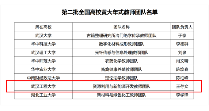 本网讯(通讯员 李哲伦 覃远航)日前,教育部印发通知,公布第二批全国高校黄大年式教师团队,我校资源利用与新能源开发教师团队成功入选。
