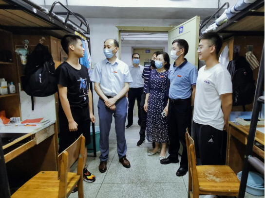 9月16日下午,副校长喻发全在相关职能部门及学院负责人的陪同下,走访慰问了永利集团304am登录2021级本科生新生宿舍,与同学们亲切交谈,了解他们的报到及生活情况。