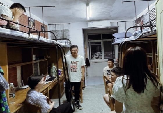 新生报到的第一天晚上,学院组织新生班主任开展第一次查寝活动,准确把握学生报道数据,摸排困难学生,同时与新生拉近距离,帮助他们尽快适应大学生活。