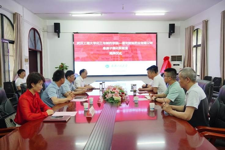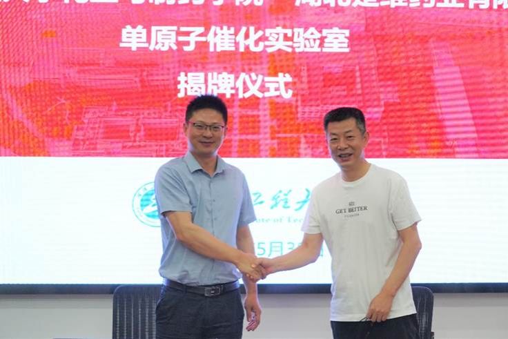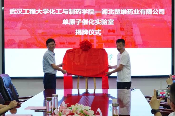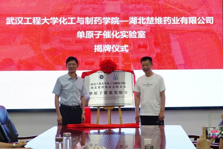 永利集团304am登录党委书记汪铁林、湖北楚维药业有限公司董事长熊进军代表双方为单原子催化实验室揭牌。