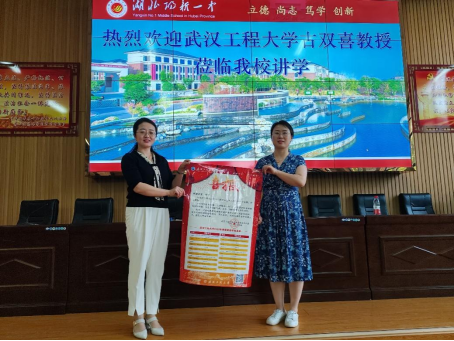周丹代表学校向阳新一中第九届体育科技文化艺术节的成功举办表示祝贺。她从学校的办学水平、科学研究、学科建设、人才培养等方面进行了介绍。她表示,一直以来,阳新一中对学校招生工作给予了强有力的支持,培养、输送了大批的优质生源,代表学校向高中表示衷心的感谢。会上,她代表学校送上喜报,并鼓励阳新一中学子积极报考我校。