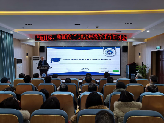 本网讯(通讯员 高友智)1月9日上午,永利集团304am登录在化工大楼多功能报告厅召开“新目标、新征程”2020年本科教学工作研讨会。学校教学质量监控与评估中心、教师发展中心主任孙先明,教务处副处长杨克平应邀出席。学院党委书记王雪梅、副院长(主持工作)汪铁林、副院长龙思会、金放出席了会议。会议由学院教学副院长金放主持,学院各系(中心)正副主任、专业负责人、课程负责人、骨干教师代表共计四十余人齐聚一堂,以高度的责任感和使命感,谋划新时期学院教学改革发展大计。
