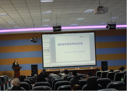 喻院长根据学校要求作了“危险化学品及其安全管理”的专题宣讲会,对危险化学品,特别是易制毒、剧毒化学品的使用、管理进行了专题宣传、动员与讲解,从危险化学品的概念,判定,国家管理规定和学院管理规定四个方面进行了全面介绍。喻院长以身边的例子,从技术层面和管理层面,作了细致的讲解和全面的要求,强调了正确认识国家危化品的管制要求与科学研究间的厉害关系,特别强调了危化品不得无证购买,不能擅自搬运,不得替朋友购买,不能私自存放,临时工不得使用,剩余的不能私下处理等要求;应严格执行双人保管、双锁、双帐、双人领取、双人使用为核心的“五双”安全管理等制度;认真执行好使用流向制度,做好使用登记记录。