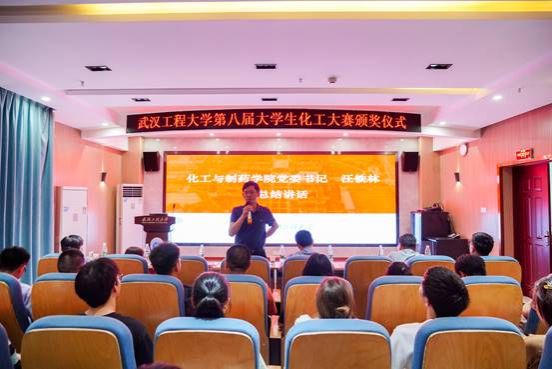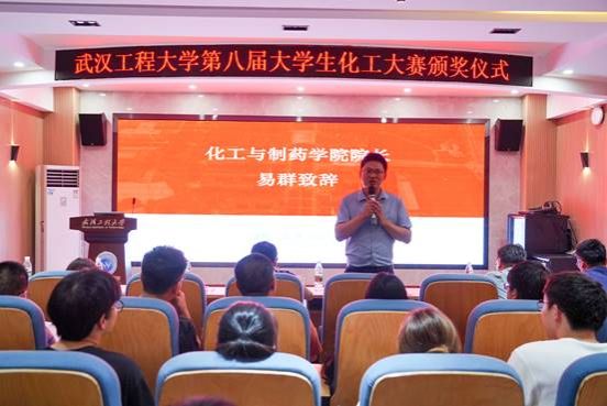 易群在颁奖仪式中致辞,他介绍了大学生化工大赛的背景、宗旨及意义等基本情况,表示在新工科背景下,以培养学生动手能力、提高学生工程素养为目标的化工大赛,对化工人才培养起到了重要的推动作用,有效提升了学校化工类专业核心课程教学质量,希望同学们通过本次大赛能提升专业水平,夯实实践技能,培养工程素养,强化责任担当,力争在中南赛区及更高级别的赛事舞台上取得优异的成绩,展现工大学子的风采。
