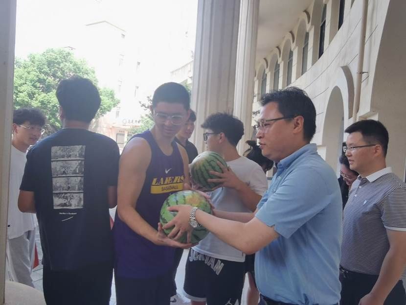 “在骄阳似火的季节,学院领导老师主动为学生着想,不仅给我们送来了酷暑必备的西瓜与饮料,还精心准备了加油大礼包,让我感受到了老师们的热情和关爱,给我们备战考研注入了全新动力!”2020级化卓班学生卢骏宇和2020级智能化工02班樊羽林真诚地说。
