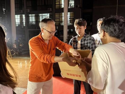 周丹、龙思会代表学院党委,向在场的2023级新生发放中秋月饼,为新生送去暖心的关怀和节日的祝福,希望同学们尽快适应大学生活,以饱满的热情和崭新的精神面貌迎接新学期,启航新征程。