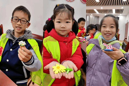 手工课上,志愿者们带领孩子们一起开展了橡皮泥创意体验课程,小朋友们积极参与创作,并在志愿者们的手把手指导下,捏成了自己心中最好看的作品,课后小朋友们围着自己的橡皮泥作品,互相评比打分,课堂上一片欢声笑语。