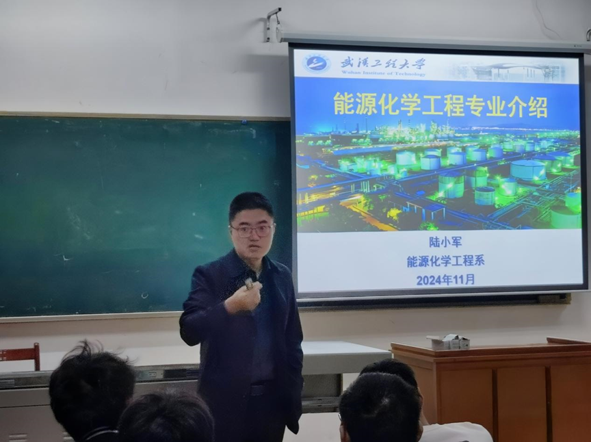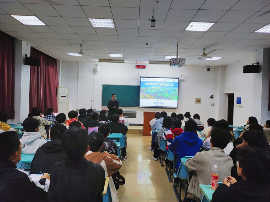 陆小军围绕“能源化工简介、师资情况、课程设计、就业方向”向能源化学工程专业学生进行了详细的专业介绍。他首先介绍了能源化工领域概况,强调了其在国家能源战略、环境保护及可持续发展中的重要地位。他指出,随着全球能源结构的转型和低碳经济的兴起,能源化工领域正迎来前所未有的发展机遇。随后,他介绍了能源化工系的师资情况。他表示,学院拥有一支高水平的师资队伍,他们不仅在学术研究上取得了显著成果,还致力于将科研成果转化为实际应用,为学生提供了宝贵的实践机会和学术指导。此外,能源化工系注重理论与实践相结合,通过课程设计,培养学生的综合素质和创新能力。讲座的最后,他重点介绍了能源化工专业的就业方向。他指出,随着国家对新能源产业的重视和大力发展,能源化工专业的毕业生在新能源开发、节能减排、环境保护等领域具有广阔的就业前景。