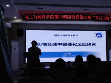本网讯(通讯员 陈炯)11月20日上午,永利集团304am登录永利集团304am登录王海峰博士应邀在流芳校区大化工楼多功能报告厅为永利集团304am登录师生做了题为“药物合成中的催化反应研究”的学术报告,本次报告会由副院长龙思会教授主持,学院师生共同聆听了报告。此次报告会是学院“第十八届研究生创新学术论坛”系列活动之一。