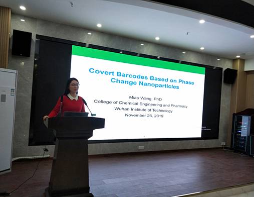 本网讯(通讯员 陈志高)11月26日上午,永利集团304am登录汪淼博士应邀在流芳校区大化工楼多功能报告厅为我院师生做了主题为“Covert Barcodes Based on Phase Change Nanoparticles”的学术报告。报告会由副院长龙思会教授主持,学院师生共同聆听了报告。此次报告会是学院“研究生创新学术论坛”系列活动之一。