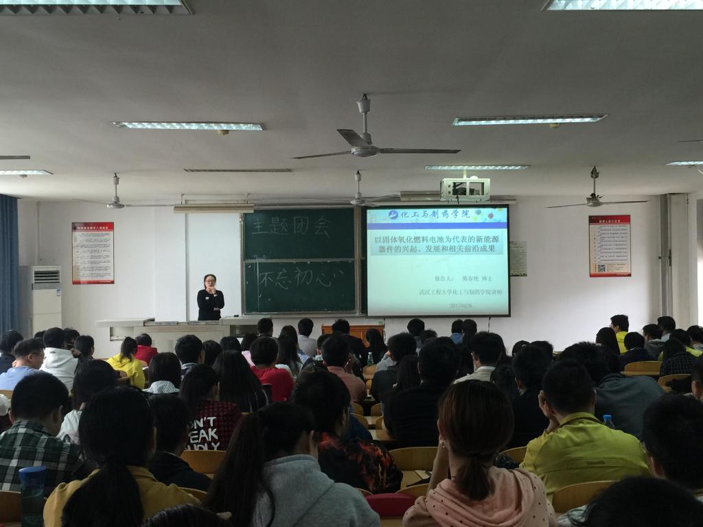 4月26日上午,永利集团304am登录熊春艳博士应邀在流芳校区一教学楼L1402教室为学生做了主题为“以固体氧化物燃料电池为代表的新能源器件的兴起、发展和相关前沿成果”的学术报告。报告会由吴华东博士主持。