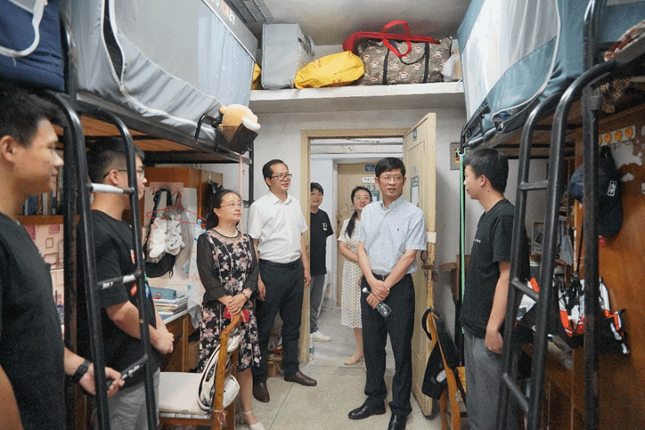 郭昕一行人深入了解学生宿舍生活情况,对学生“急难愁盼”诉求进行详细记录,并针对问题进行逐一解答。郭昕对同学们亲切的讲到“党政办公室就在综合楼七楼,欢迎同学们随时来找我!”,同时叮嘱同学们要规律作息,保持宿舍卫生,勤通风,养成良好的学习和生活习惯,共同营造安全、舒适的寝室环境。